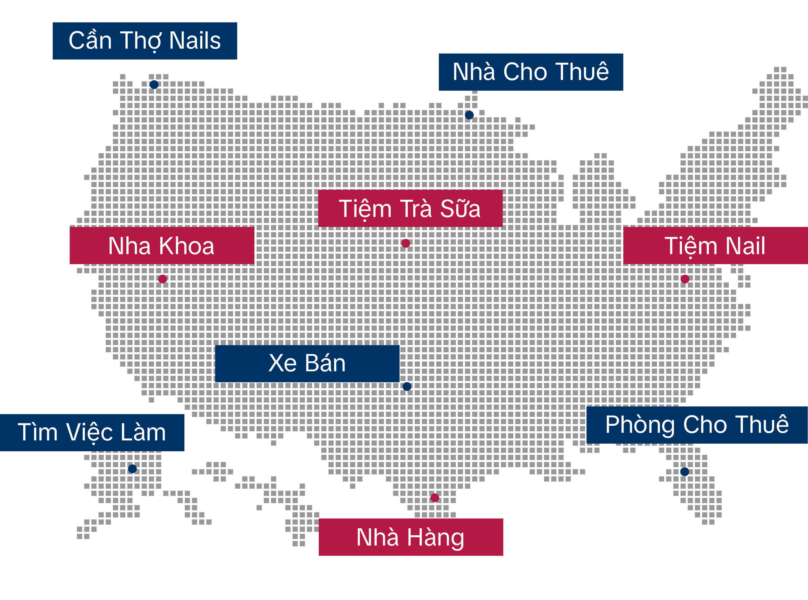 Dễ dàng quảng bá dịch vụ, tuyển thợ, mua bán, và giới thiệu doanh nghiệp của bạn đến hàng nghìn người Việt đang sinh sống và làm việc tại Hoa Kỳ. Tiếp cận đúng đối tượng – nhanh chóng, hiệu quả và hoàn toàn dễ dàng.